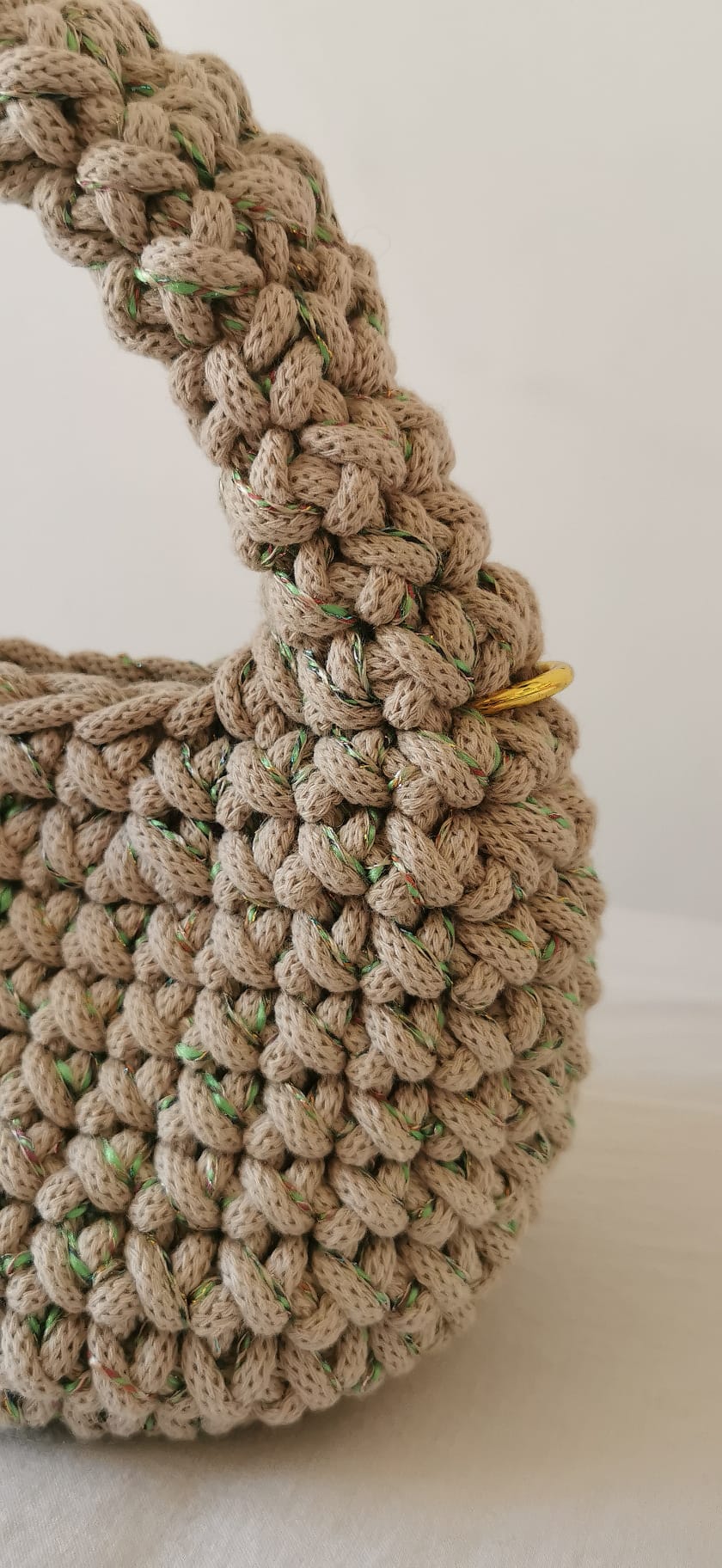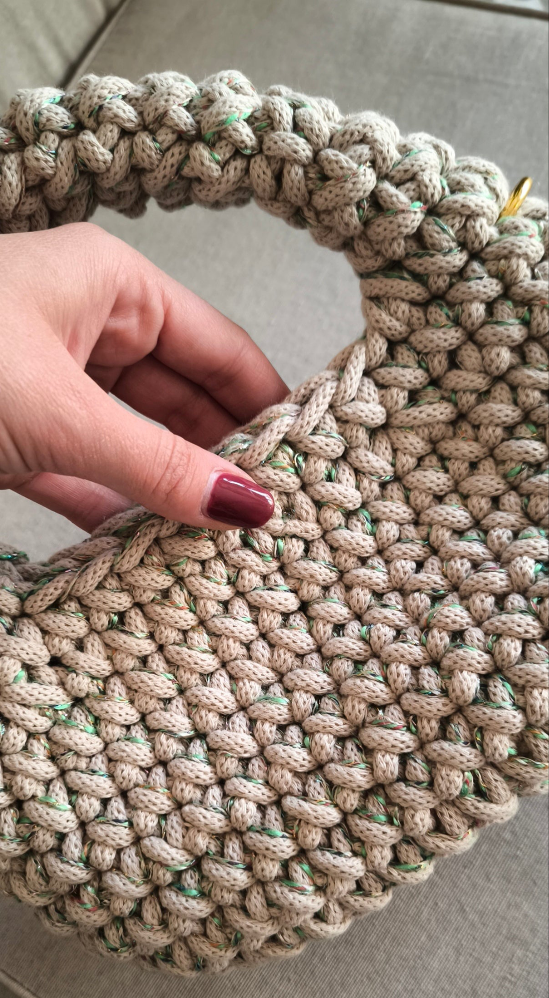 Colore beige con aggiunta di filo lurex nei toni del verde, beige e rosso. (Vedi dettagli foto)