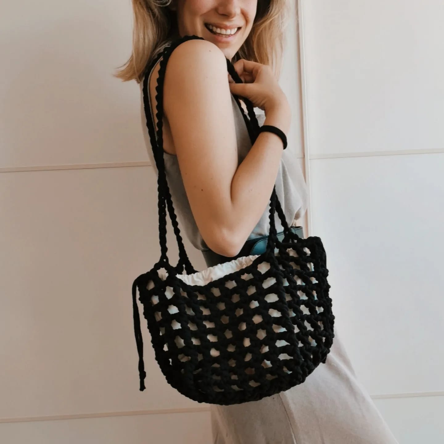 Sacca punto rete da portare a spalla per il mare ma non solo ....facile da piegare e arrotolare occupa poco spazio in valigia 🧳